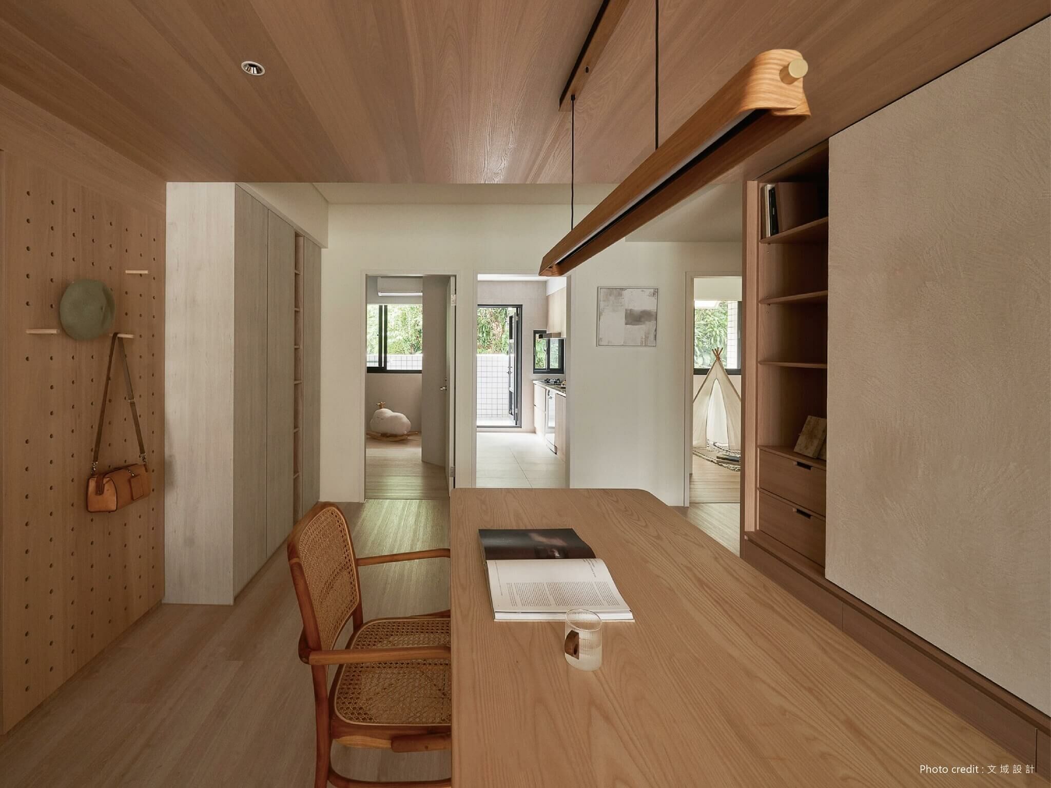 隙光,木層中漫出的微光,讓原本沈穩安靜的木質燈具增添了一絲想像。
