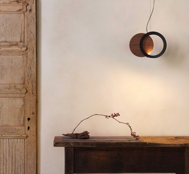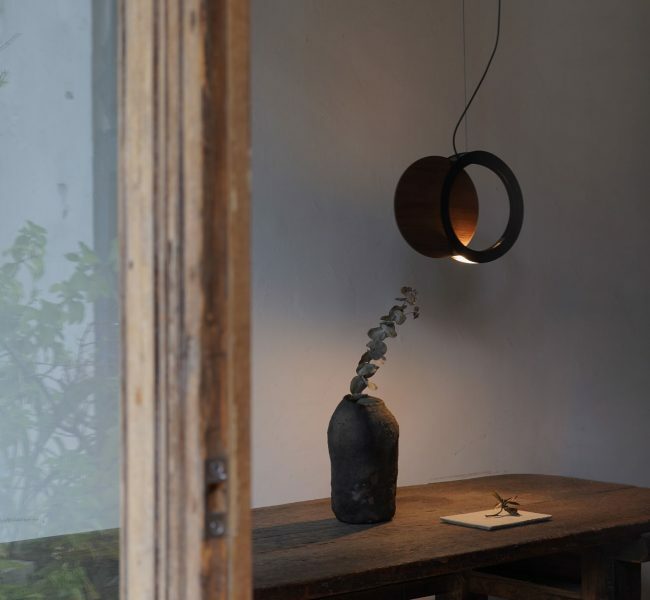 「在木紋與光之外,新款集合吊燈融入了複曲度金屬框體與木片的集合,帶來更豐富空間感.空間、木紋與光三者的交錯,讓集合從二維變成三維的視覺體驗。」