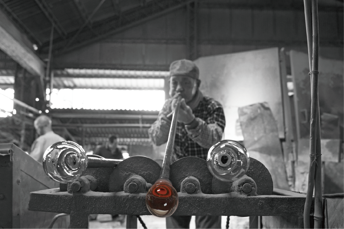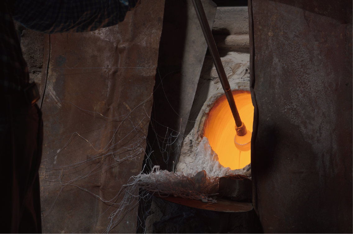 「工藝帶出的細膩的製作技法,為事物賦予獨有的溫度記憶。」以嫻熟的技法為每顆玻璃吹製、塑型,除了展現玻璃製成中的工法技藝,更讓玻璃外觀保存獨有的溫度印記。