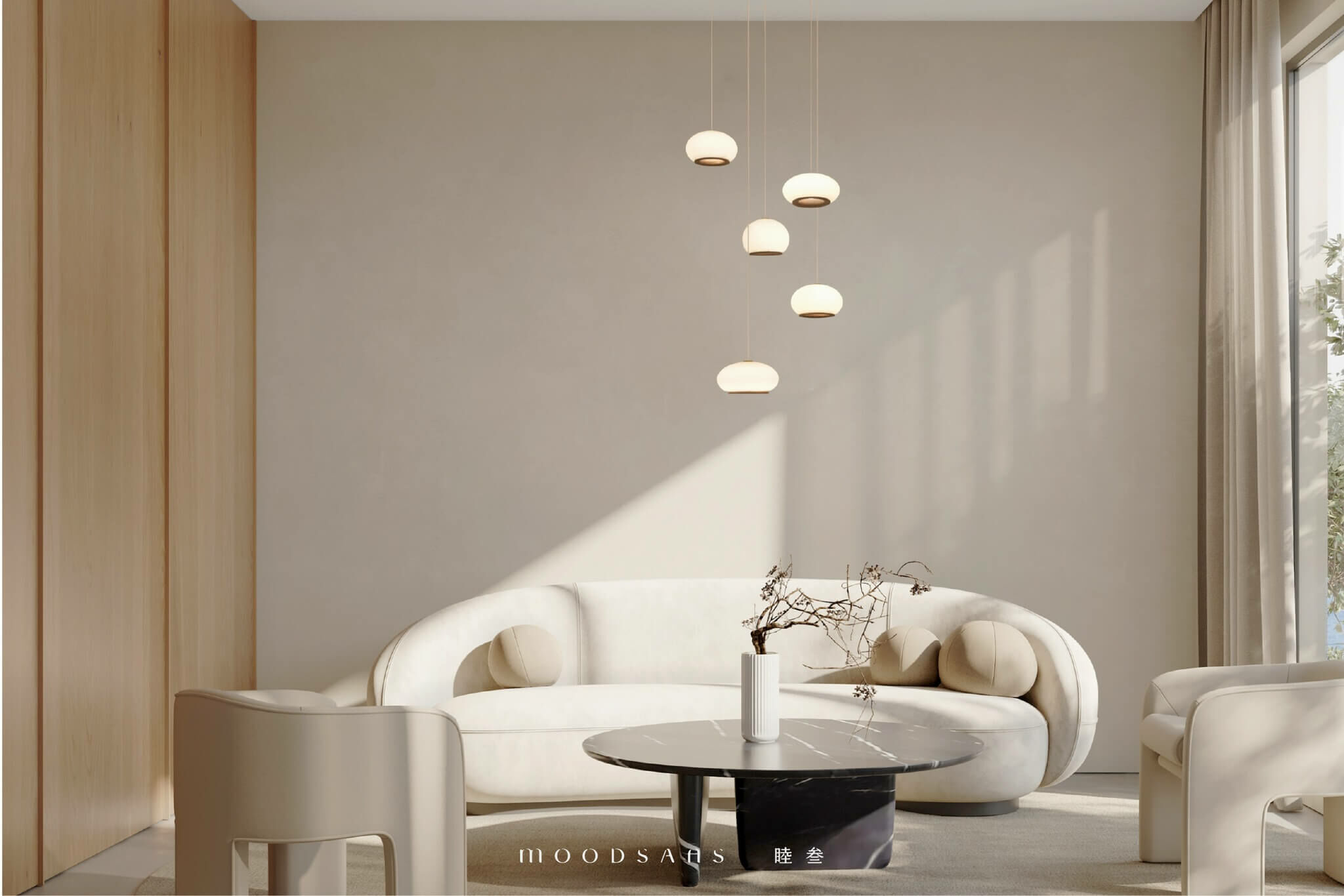 白露未晞,凝結的水滴是張力的表現,將動態的水滴分解成靜態的外型,群吊時能感受到動態的記憶。